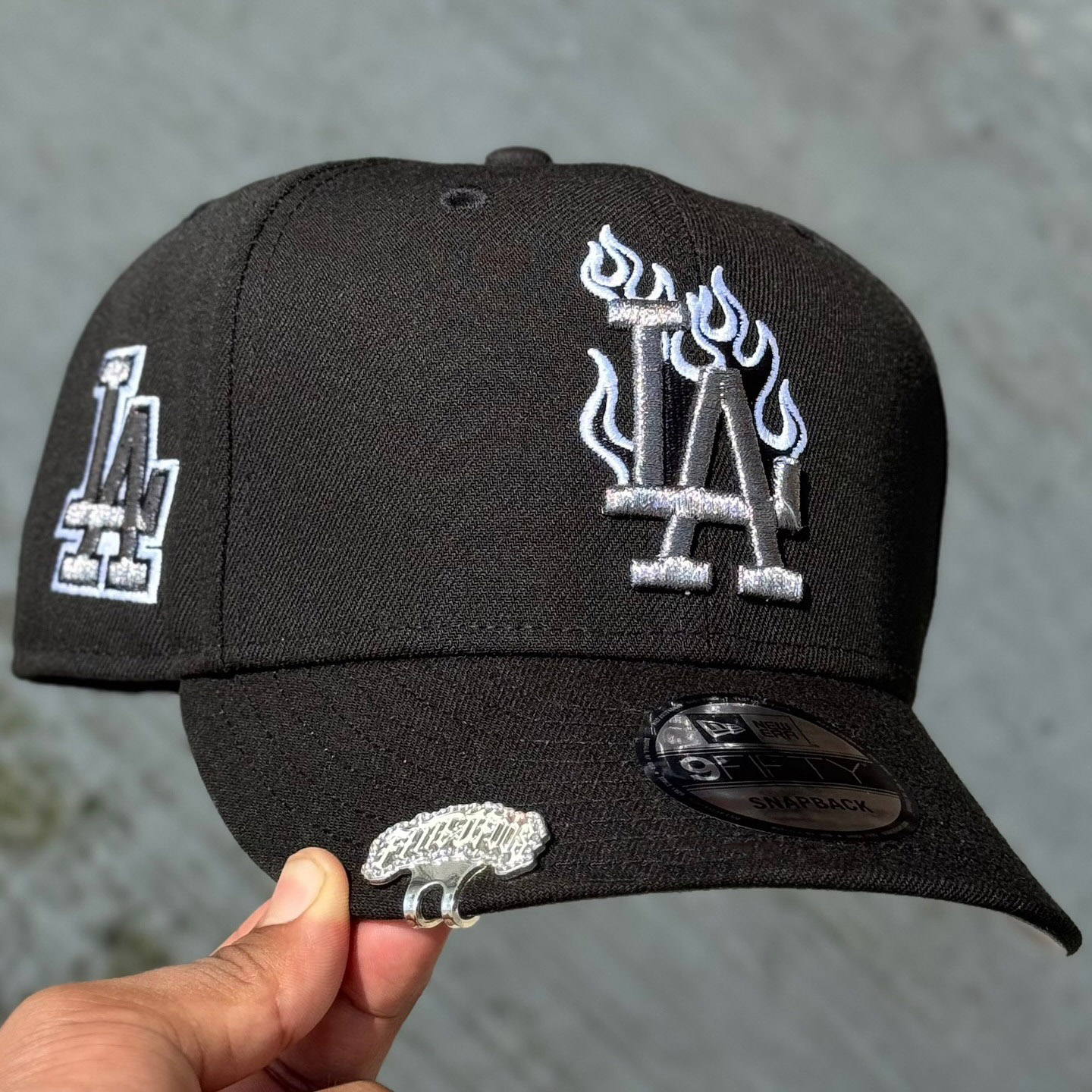 NEW ERA BLACK LOS ANGELES DODGERS FLAME LOGO EMBROIDERED CASUAL BASEBALL CAP